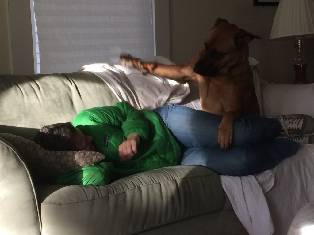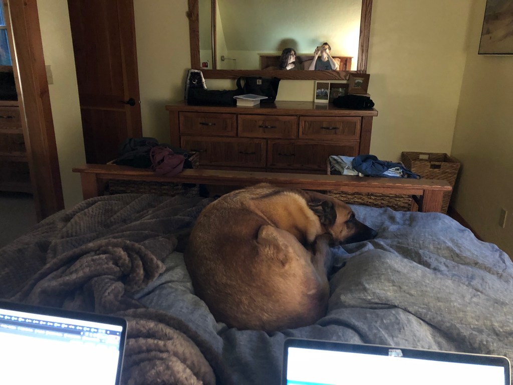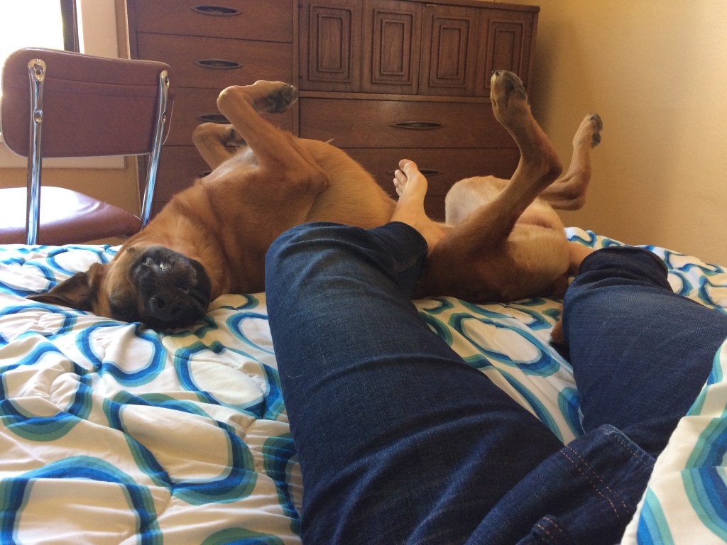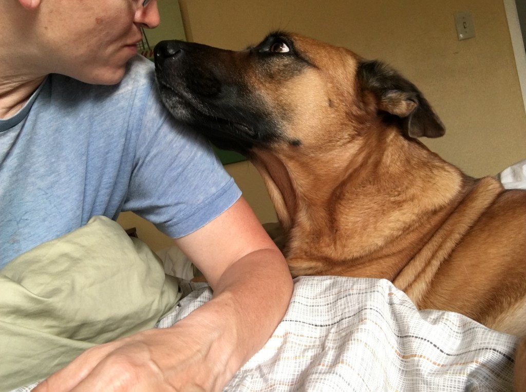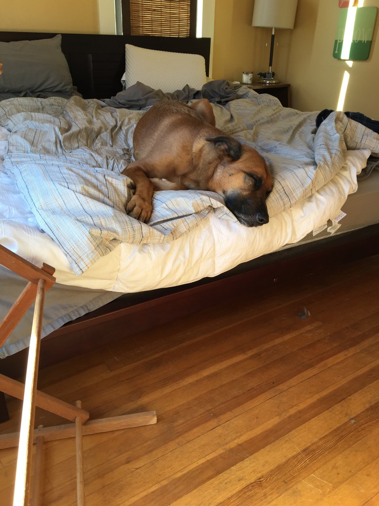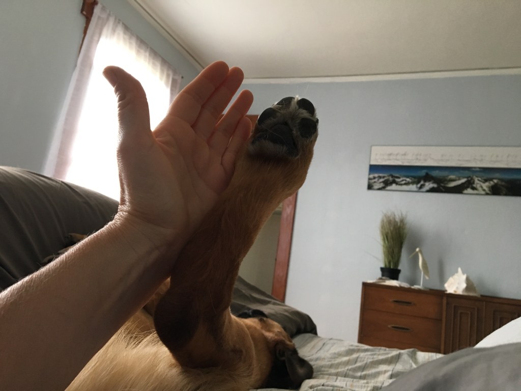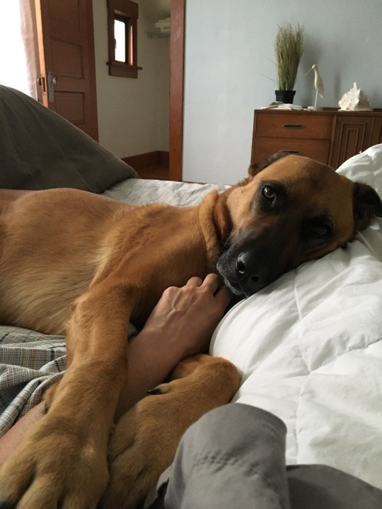 She was a bed hog of the best sort. Early on when it was just the two of us, she (being a leaner) was warm and snuggly, and I often woke with either with her face next to mine or a big furry foot extended sweetly up under my nose.