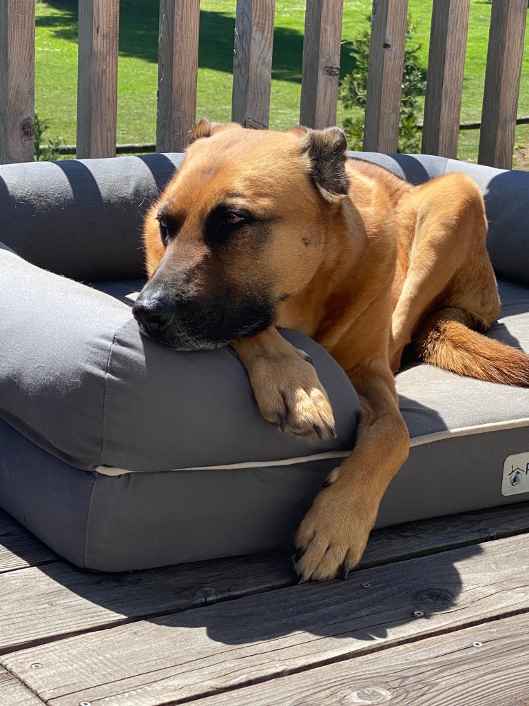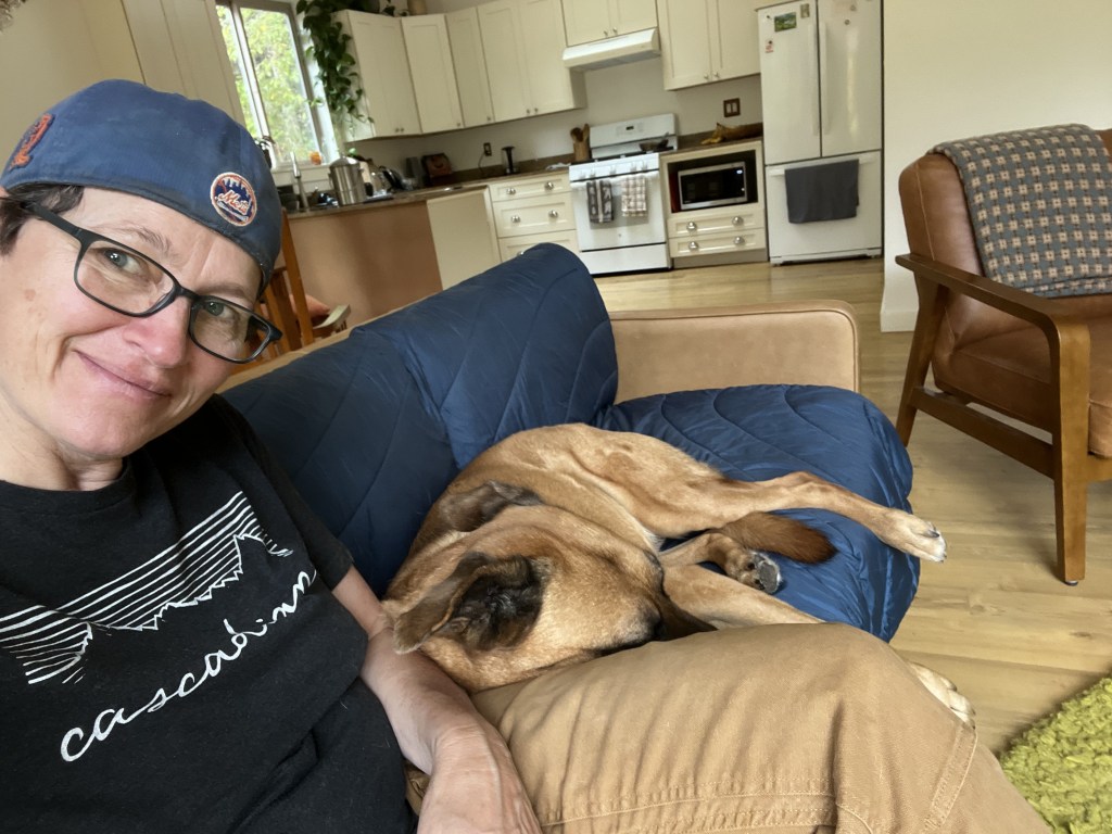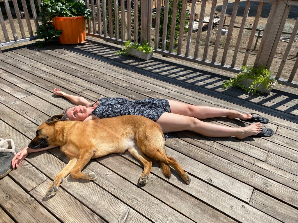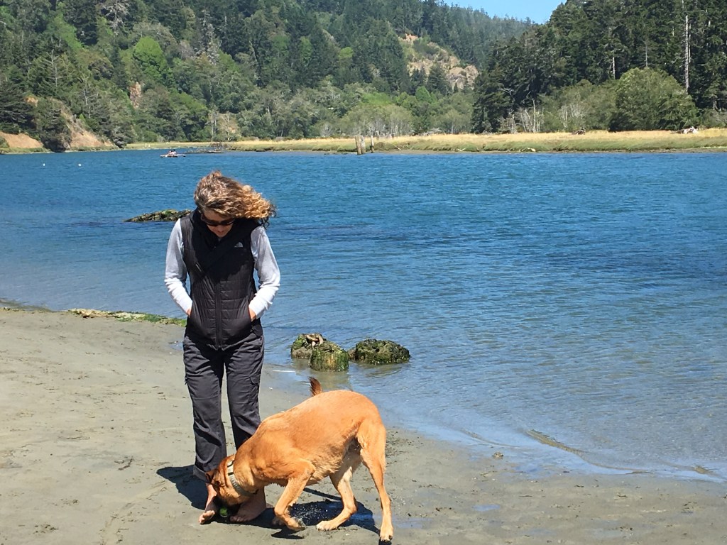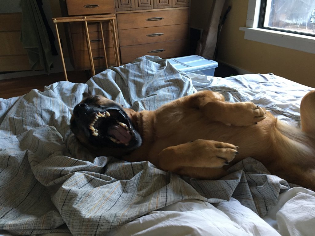 I miss everything about her. I miss being greeted. I miss her coming to the bed to nudge me out. I miss her expectation and efficiency of licking the plates and bowls after meals. I miss her staring at me as I shuffle across a dark kitchen to make tea, but was always encouraged to (and did) make her a fire first. I miss watching her roll onto her back in the grass, esp when chewing a stick. I miss porch sitting with her. I miss being stared at so intensely that I’m convinced she is a.) the best human trainer in the world and b.) she knows all the secrets of the universe. I miss her big sweet head in my lap as we three sat on the couch watching a show. I especially miss her shoving further and further across to be not only in my lap but now partially in Laura’s. I miss the way she would fall asleep on the couch and her head would lift the moment she heard the spoon scrape the bottom of the ice cream container. I miss feeding her chicken off the bone in the kitchen, and how gentle she could be even when ravenous. I miss her singing at the beach, insistent we throw a stick or stone. I miss kicking a ball and watching the worlds best dog goalie. I miss how she would put her paw on my foot when she wanted something I had. I miss the days long ago when she would jump back on the bed in the morning, wrestle with me making amazingly scary growling noises, would stop when I said ‘wait’ and launch off the bed like a dog rocket when I’d say “lets go”. I miss how saying the words “let me get my pants” was code for going for a walk. I miss the smell of her head, the groan she made when scratching her ear, the funny noises she made in her sleep and her gentle snore that signaled I could fall asleep.