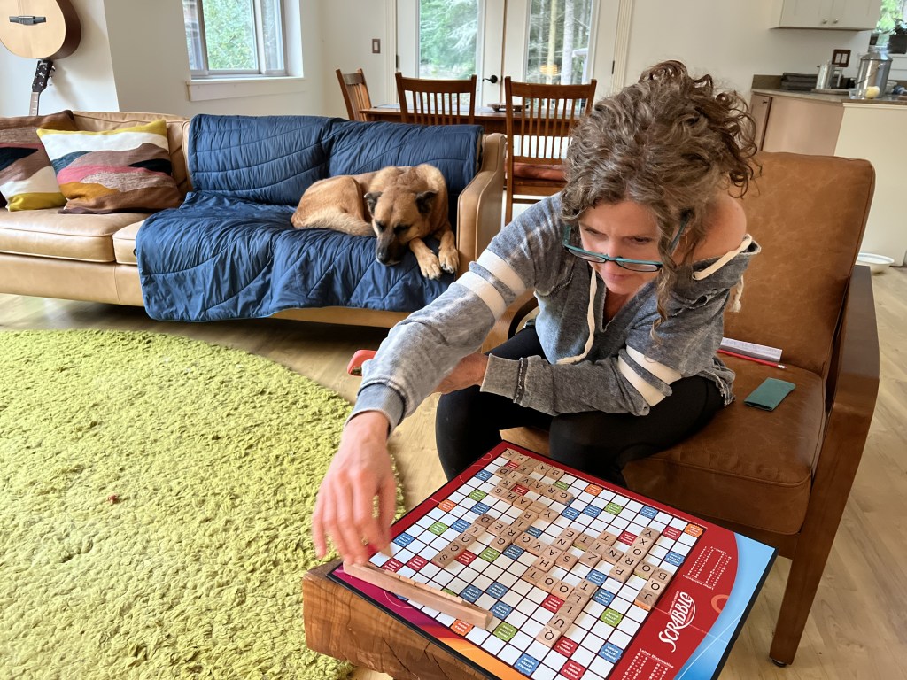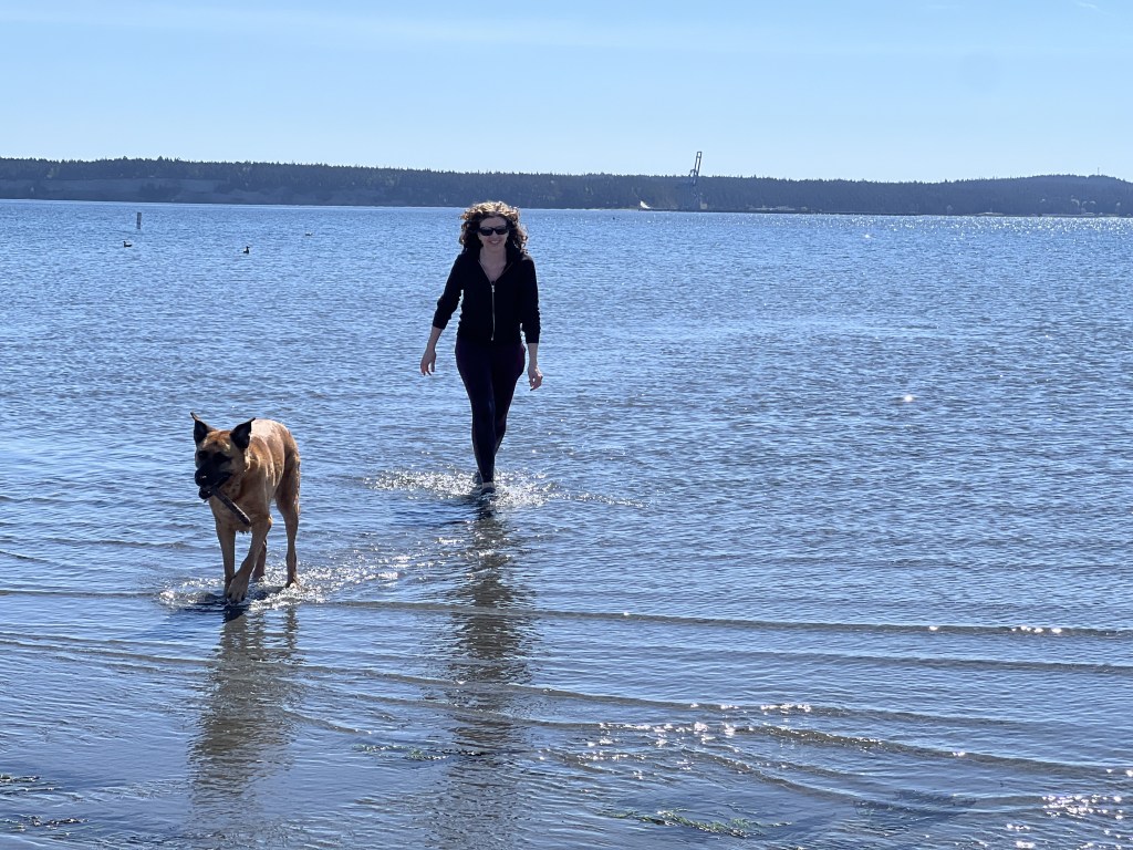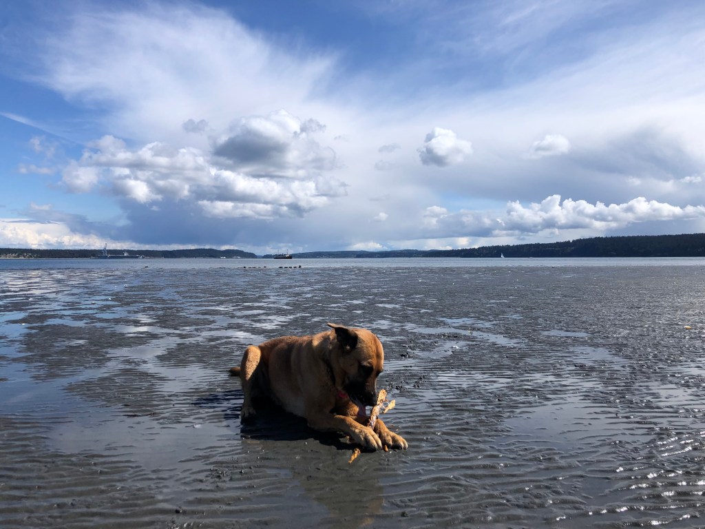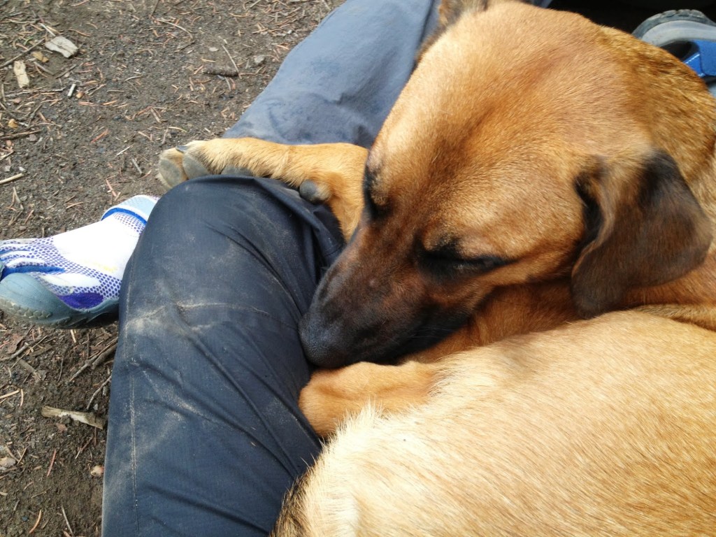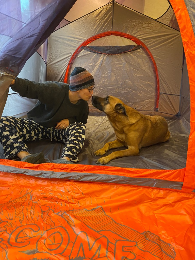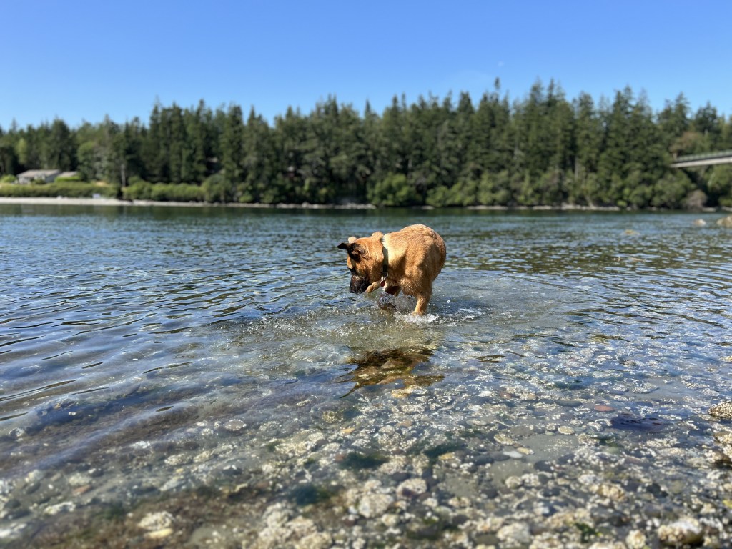 I miss everything about her. I miss being greeted. I miss her coming to the bed to nudge me out. I miss her expectation and efficiency of licking the plates and bowls after meals. I miss her staring at me as I shuffle across a dark kitchen to make tea, but was always encouraged to (and did) make her a fire first. I miss watching her roll onto her back in the grass, esp when chewing a stick. I miss porch sitting with her. I miss being stared at so intensely that I’m convinced she is a.) the best human trainer in the world and b.) she knows all the secrets of the universe. I miss her big sweet head in my lap as we three sat on the couch watching a show. I especially miss her shoving further and further across to be not only in my lap but now partially in Laura’s. I miss the way she would fall asleep on the couch and her head would lift the moment she heard the spoon scrape the bottom of the ice cream container. I miss feeding her chicken off the bone in the kitchen, and how gentle she could be even when ravenous. I miss her singing at the beach, insistent we throw a stick or stone. I miss kicking a ball and watching the worlds best dog goalie. I miss how she would put her paw on my foot when she wanted something I had. I miss the days long ago when she would jump back on the bed in the morning, wrestle with me making amazingly scary growling noises, would stop when I said ‘wait’ and launch off the bed like a dog rocket when I’d say “lets go”. I miss how saying the words “let me get my pants” was code for going for a walk. I miss the smell of her head, the groan she made when scratching her ear, the funny noises she made in her sleep and her gentle snore that signaled I could fall asleep.