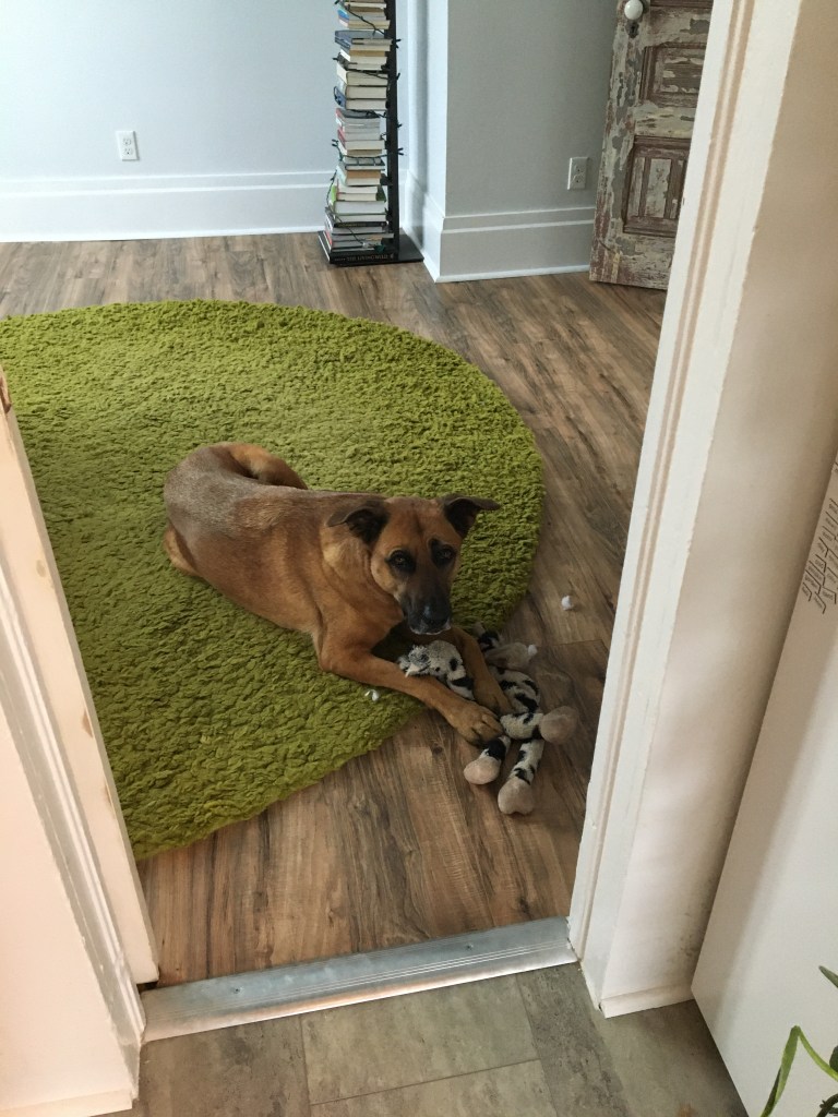 The first night, however, was a test of wills. When it was time for her to go in her crate after a brief out and about with her new family, she balked, or rather barked. I was firm. She barked more. I basically barked back and she fled to my bedroom and hid under the bed. Once we got her in the crate, she barked some more and my soon-to-be-ex gave me the hairy eyeball. The kids went to bed, and I worried that I had erred and slept very little.