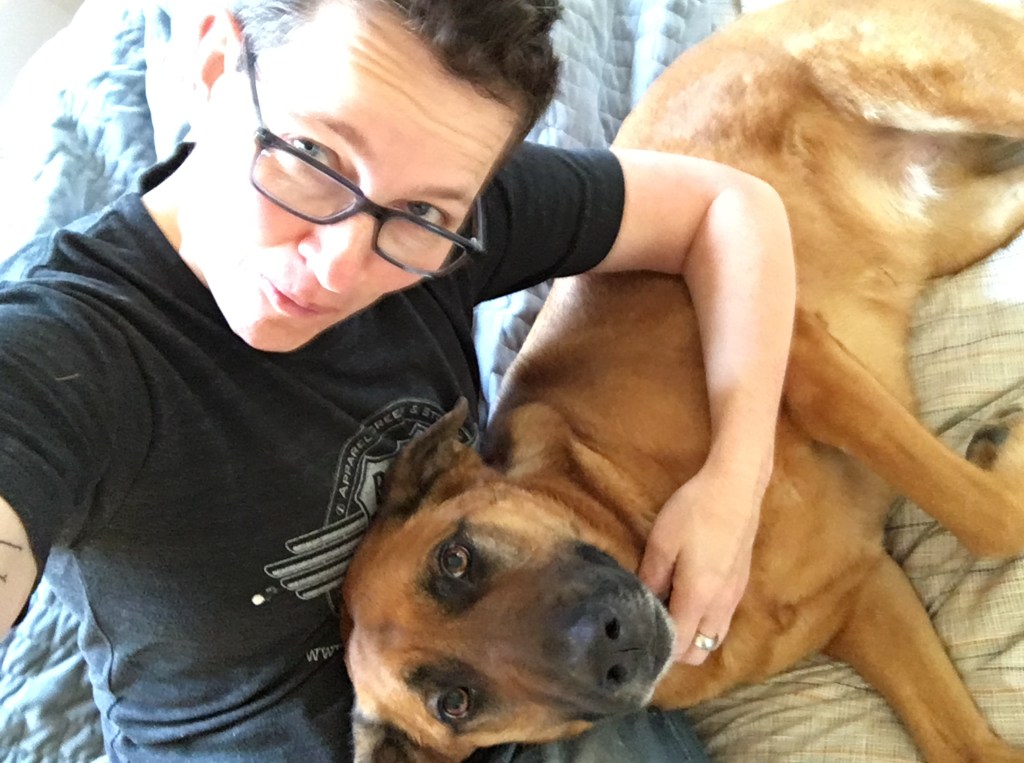 The year was 2012. As my 44th birthday approached, I asked the universe for a dog – a big dog, female, short-haired, deep voice, sweet. The kids and I crowded around the computer. Petfinder showed us a local shelter filled with dogs in need, mostly pit mixes . . . and Lu. She stared back at us, all eleven pounds of her, a jet black snout, ginger fur.