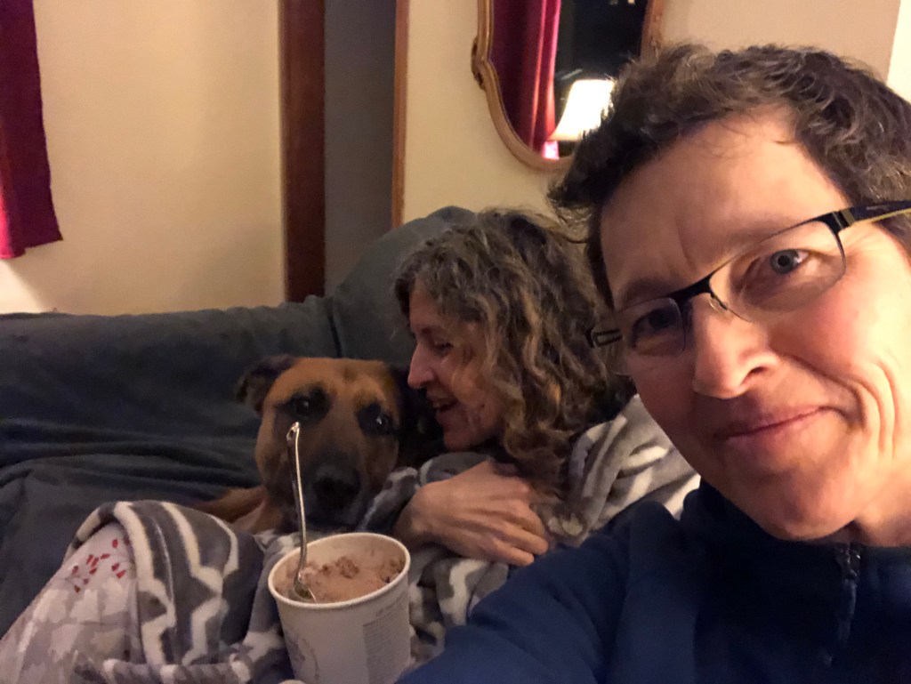 When I fell head over heels and completely in love, Luka claimed her other human. Laura became loved twice over. I didn’t know someone could love Lu like I did. Laura was the treat bringer, the stick-stander-on-er, the other person she claimed and ran to greet. Laura could smother Luka with kisses, her curls falling all over Lu’s face and Lu let her. Laura plucked every last bit of meat from a whole chicken to feed our aging girl, mixed with green beans and cottage cheese and rice, heated just a bit, just like Lu liked it. Laura knew Lu. We were a happy pack.