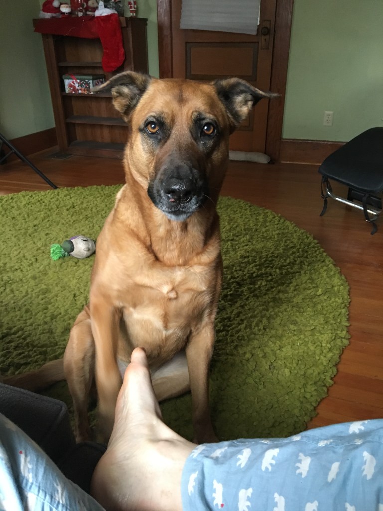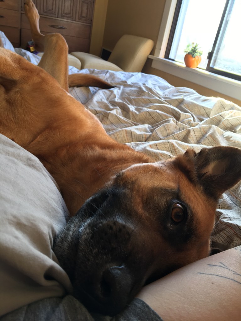 I didn’t know what she was trying to tell me, but she wasted little time letting me know she was smart, sweet, ridiculous, and mine. Standing at breakfast, all ears and paws, and a tail reaching to the floor, I began to fall in love. We hid treats around the house, she learned her toys by name, she snuffled out the kids from under blankets while watching tv, giggling all around.