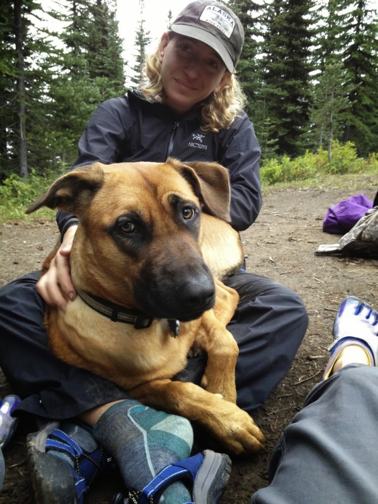We began the ritual of she being allowed to sleep on the bed, starting in hotels and later ending with me buying us a California king. We ate fast food together, her sweet whiskery lips delicately taking chicken nuggets from my fingers from the back seat. She chewed on the frame of my three thousand dollar mountain bike, because it was there. We played at all the rest stops, found railroad tracks and forest roads to wander on. We visited friends in Columbus, O-hi and Laramie Wyoming. We licked the salt flats in Nevada and eventually made our way to the pacific northwest where less than a year old she gracefully took 3 flights in the belly of smaller and smaller planes to land in Dillingham Alaska where off leash life began that summer.